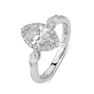 Niespotykany kształt pierścionka przyciąga wzrok do pięknego diamentu Marquise shape.